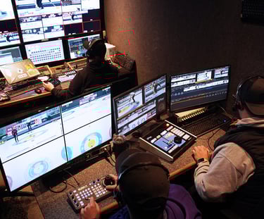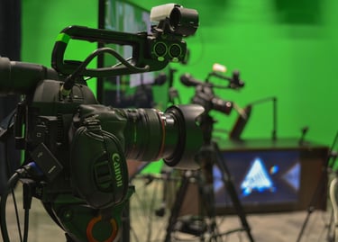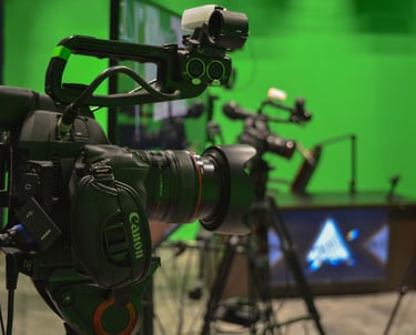 Studio A delivers next-level 4K production. It features a dedicated chromakey cyclorama with powerful Tricaster TC1 4K and Bolin 8 Series cameras. Perfect for superior broadcasts, podcasts, and recordings, featuring remote guest integration and ultra-fast 1GB internet.